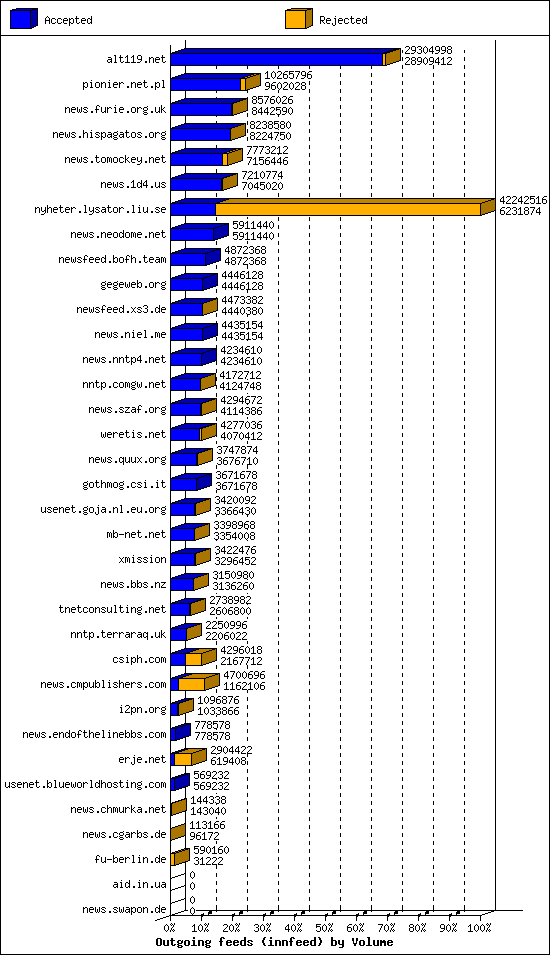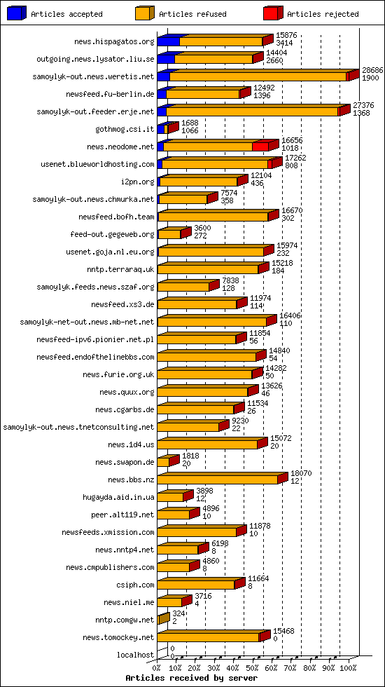 | 2 | outgoing.news.lysator.liu.se | 4 | 14404 | 2660 | 11584 | 160 | 18% | 47:59:36 |