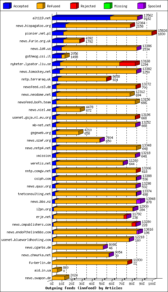 | 13 | usenet.goja.nl.eu.org | 20 | 15974 | 232 | 15696 | 46 | 1% | 47:19:44 |