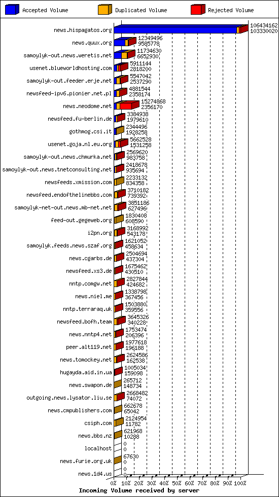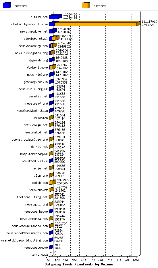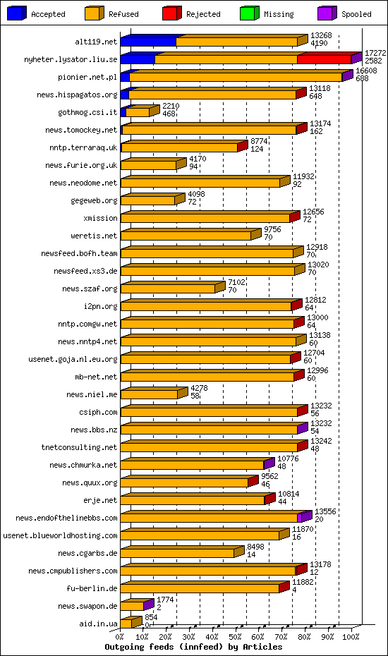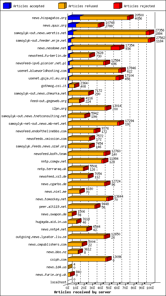 | 20 | nntp.comgw.net | 2 | 11984 | 128 | 11170 | 686 | 1% | 34:18:14 |