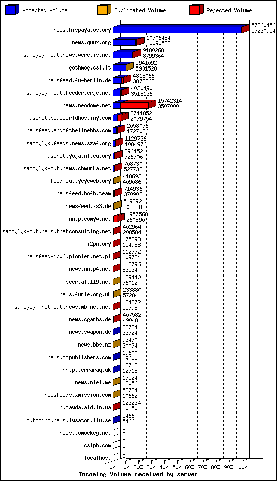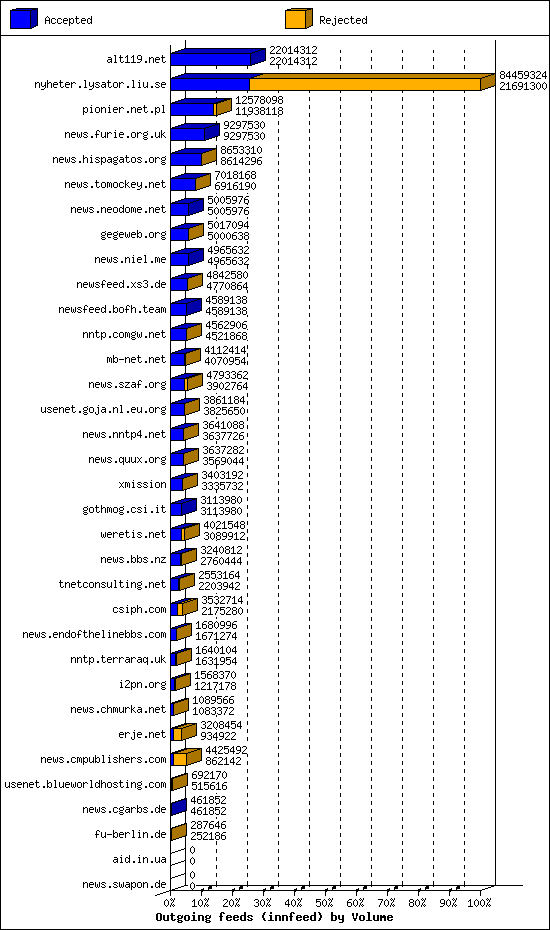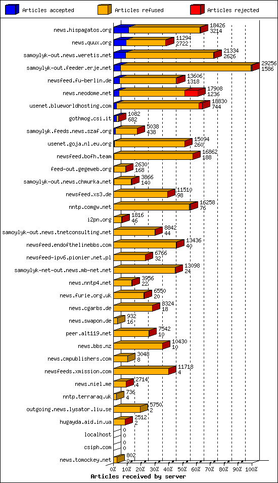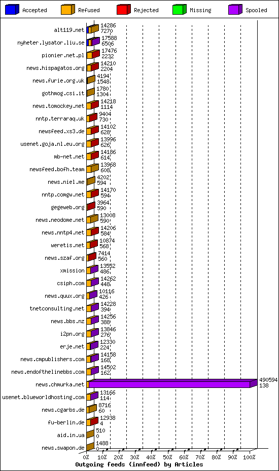 | 10 | usenet.goja.nl.eu.org | 20 | 15094 | 260 | 14796 | 38 | 1% | 42:28:30 |