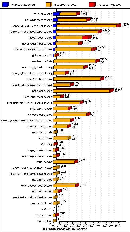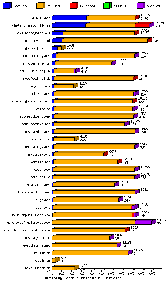 | 10 | usenet.goja.nl.eu.org | 22 | 15916 | 316 | 15336 | 264 | 1% | 43:06:06 |