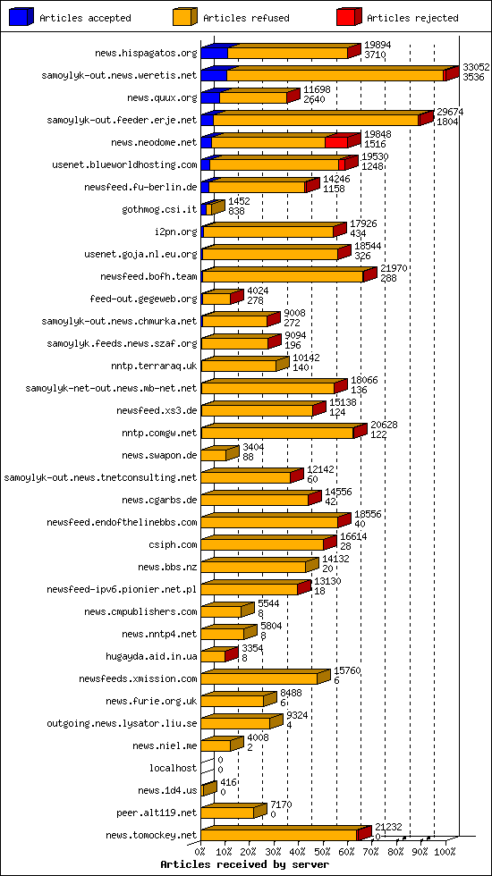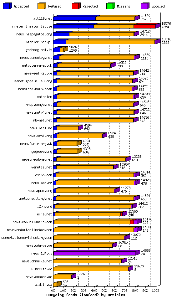 | 10 | usenet.goja.nl.eu.org | 26 | 18544 | 326 | 18196 | 22 | 1% | 49:50:52 |