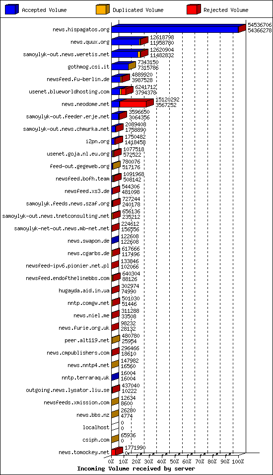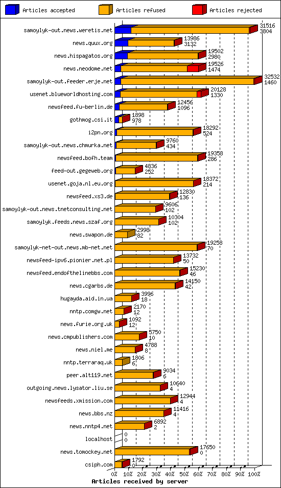 | 13 | usenet.goja.nl.eu.org | 34 | 18372 | 214 | 18122 | 36 | 1% | 47:30:18 |
