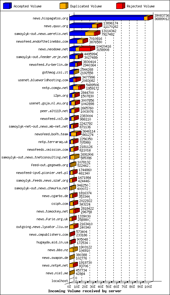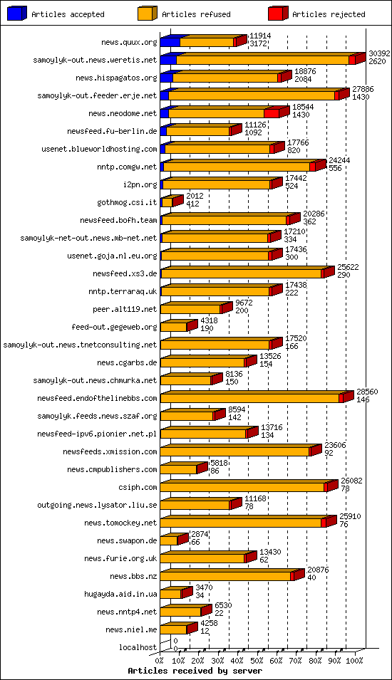 | 8 | nntp.comgw.net | 6 | 24244 | 556 | 22812 | 876 | 2% | 66:42:50 |