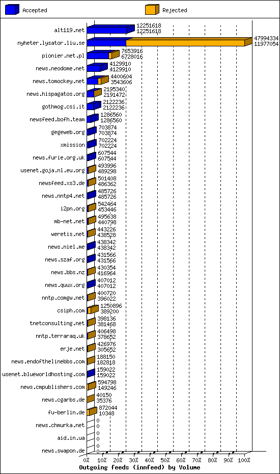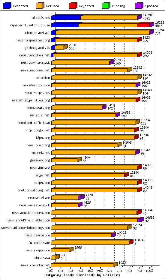 | 13 | usenet.goja.nl.eu.org | 22 | 17436 | 300 | 16632 | 504 | 1% | 48:59:00 |