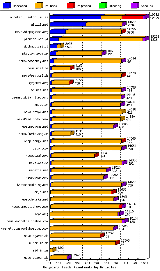 | 11 | usenet.goja.nl.eu.org | 20 | 17536 | 196 | 17312 | 28 | 1% | 48:18:56 |