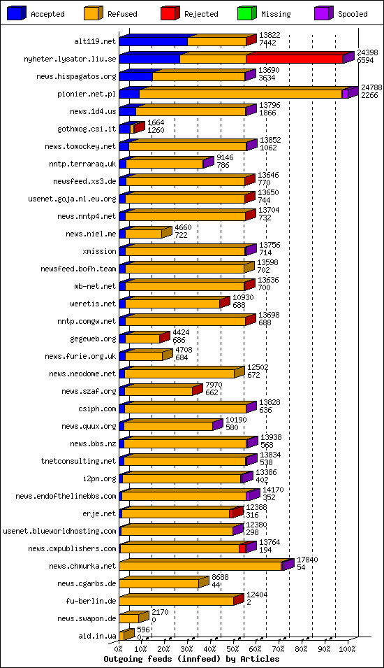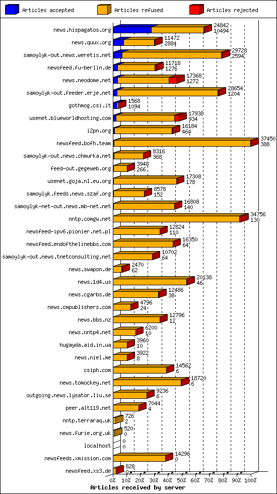 | 16 | nntp.comgw.net | 4 | 34756 | 130 | 34308 | 318 | 0% | 93:26:54 |