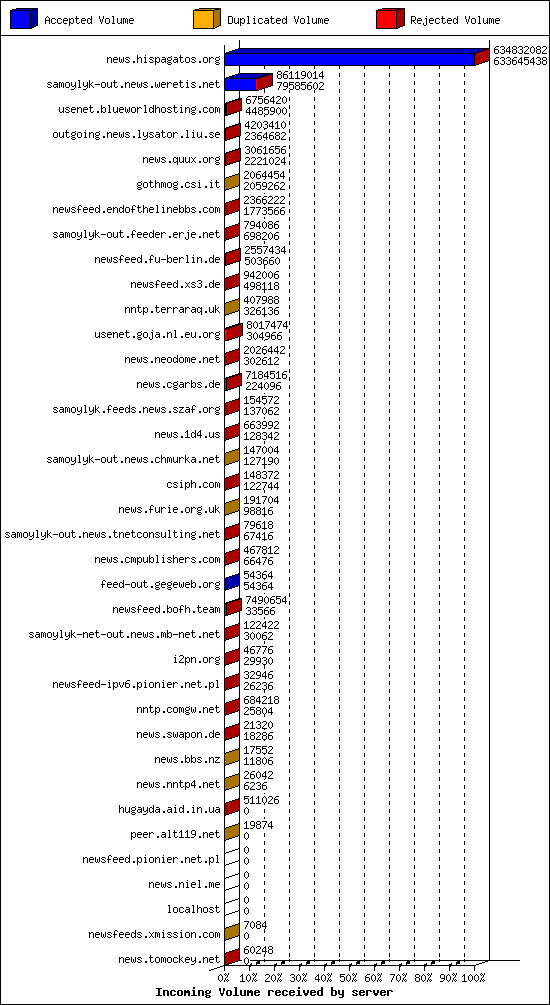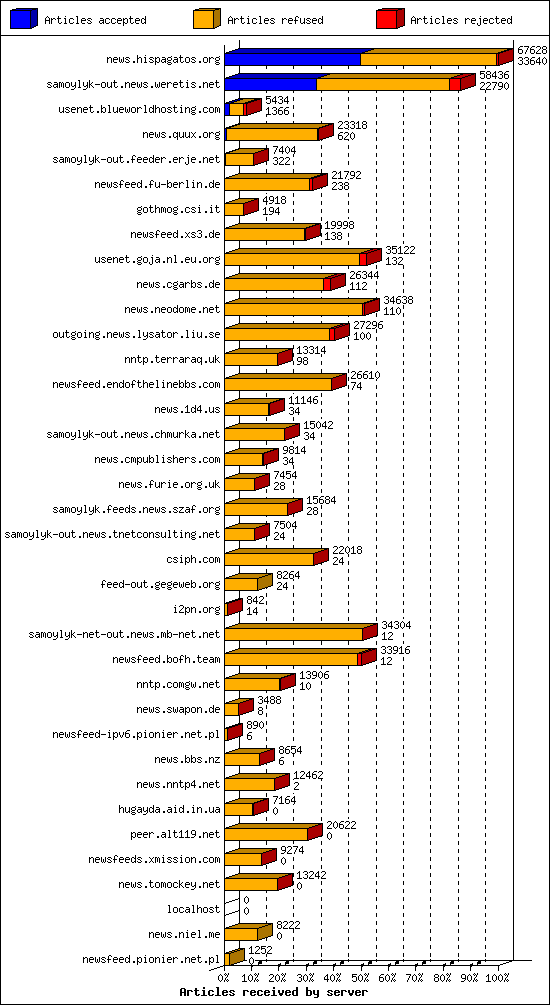 | 9 | usenet.goja.nl.eu.org | 16 | 35122 | 132 | 33400 | 1590 | 0% | 17:40:44 |