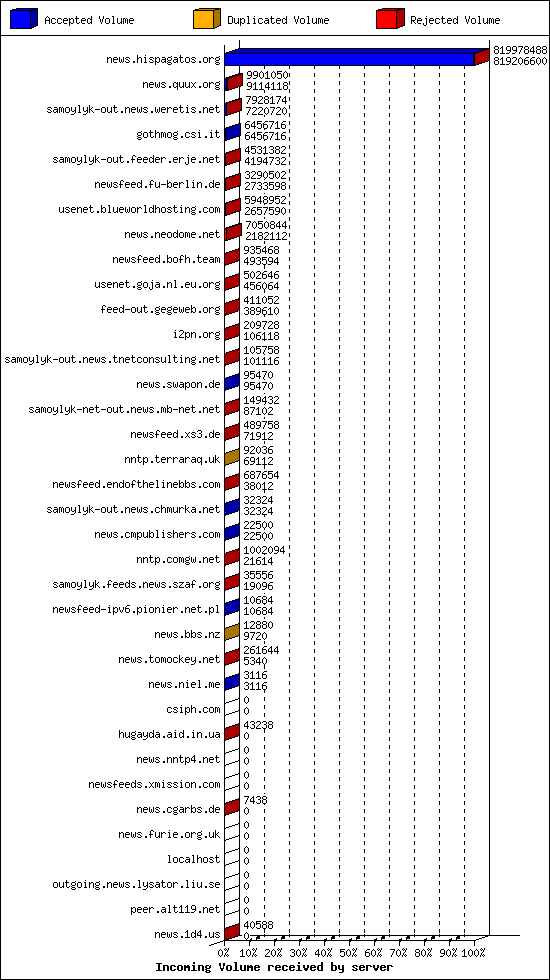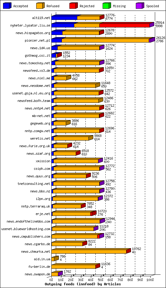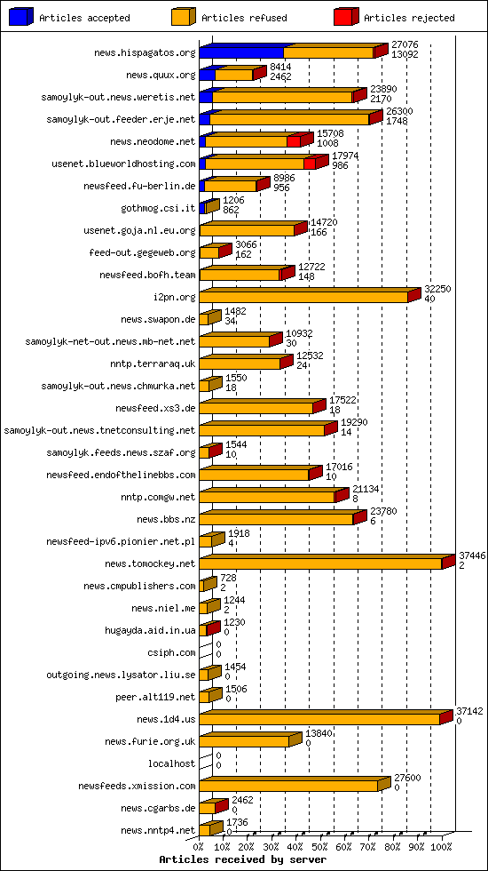 | 9 | usenet.goja.nl.eu.org | 20 | 14720 | 166 | 14530 | 24 | 1% | 43:51:34 |