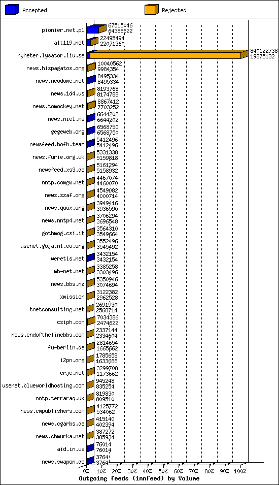 | innfeed | 15052 | 11.6% | 2.8 MB | 15.2% |