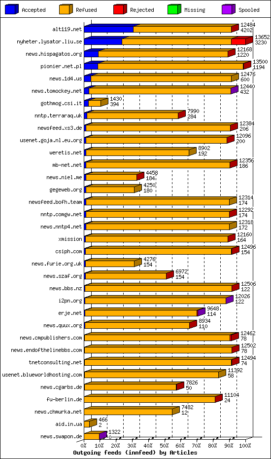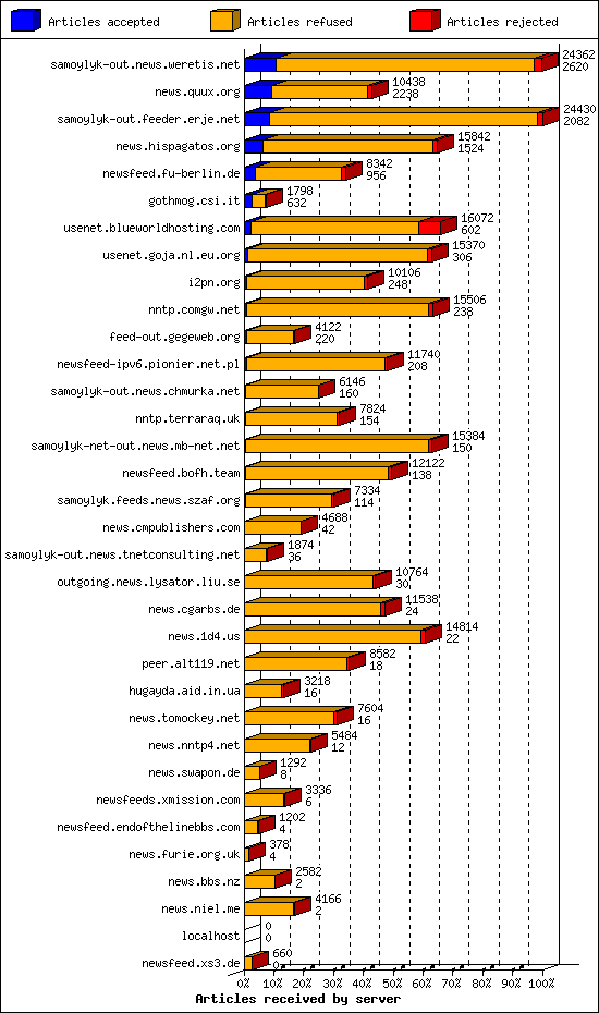 | 8 | usenet.goja.nl.eu.org | 22 | 15370 | 306 | 14706 | 358 | 1% | 45:31:14 |