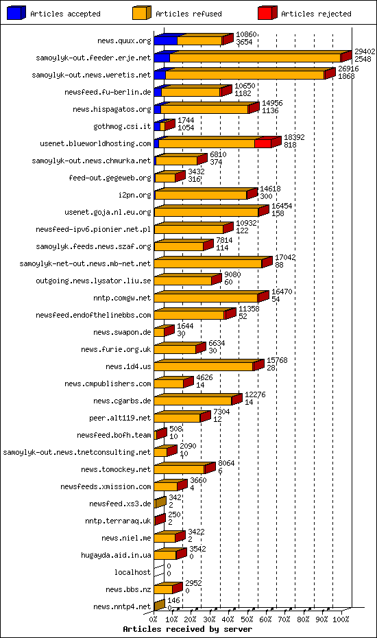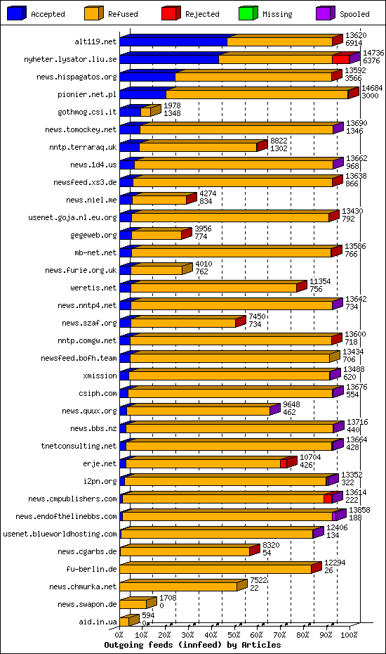 | 15 | outgoing.news.lysator.liu.se | 4 | 9080 | 60 | 8980 | 40 | 0% | 47:00:06 |