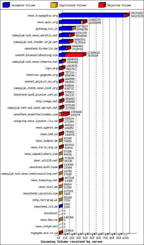 | 7 | usenet.blueworldhosting.com | 1436 | 18392 | 818 | 15026 | 2548 | 4% | 47:33:46 |