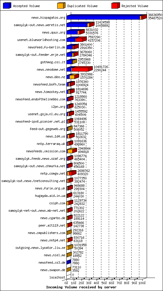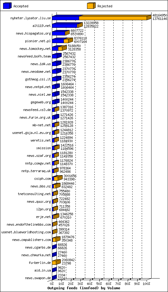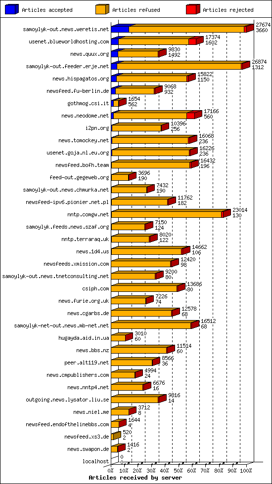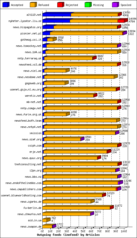 | 10 | usenet.goja.nl.eu.org | 22 | 16226 | 236 | 15752 | 238 | 1% | 47:44:06 |