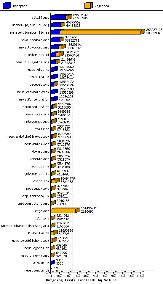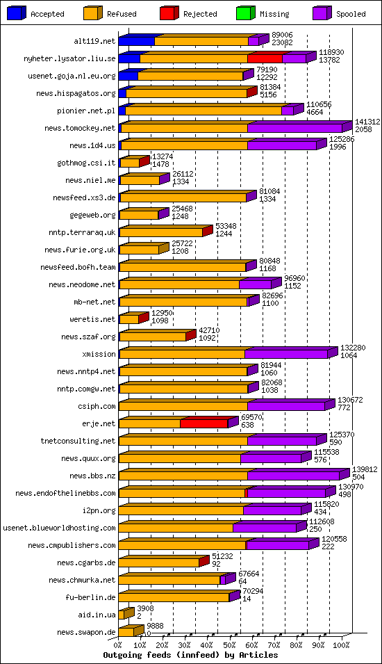 | 14 | usenet.goja.nl.eu.org | 30 | 116184 | 224 | 114580 | 1380 | 0% | 55:33:10 |