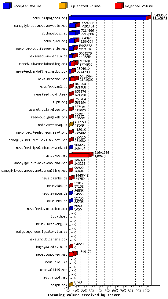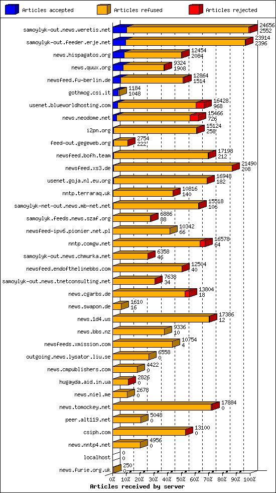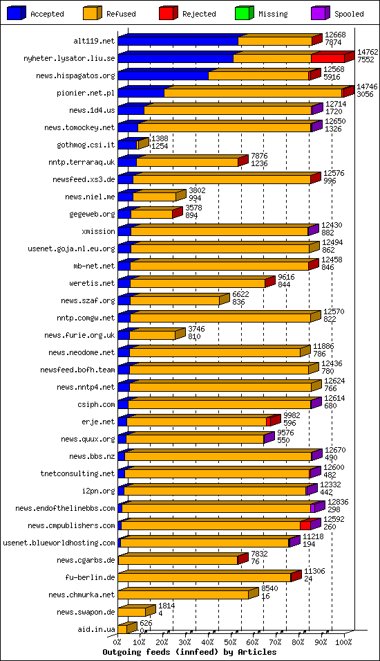 | 13 | usenet.goja.nl.eu.org | 20 | 16948 | 182 | 16746 | 20 | 1% | 47:35:12 |