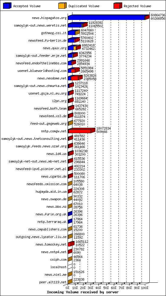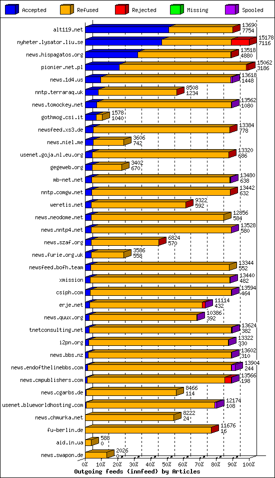 | 10 | usenet.goja.nl.eu.org | 22 | 17916 | 270 | 17540 | 106 | 1% | 47:53:58 |