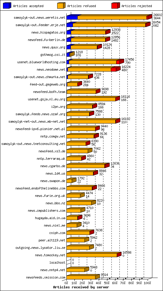 | 17 | nntp.comgw.net | 6 | 9136 | 64 | 8962 | 110 | 0% | 30:27:46 |