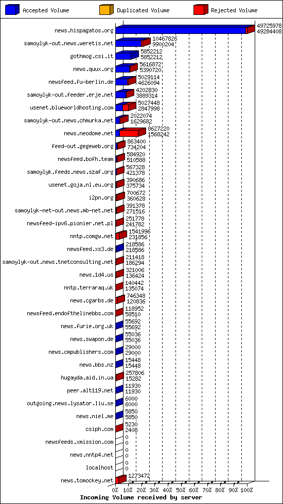 | 5 | news.quux.org | 8 | 10124 | 1428 | 8620 | 76 | 14% | 47:15:34 |