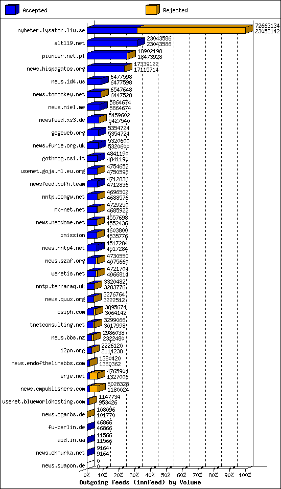 | 2 | samoylyk-out.feeder.erje.net | 1156 | 26054 | 2082 | 23784 | 188 | 7% | 94:10:58 |