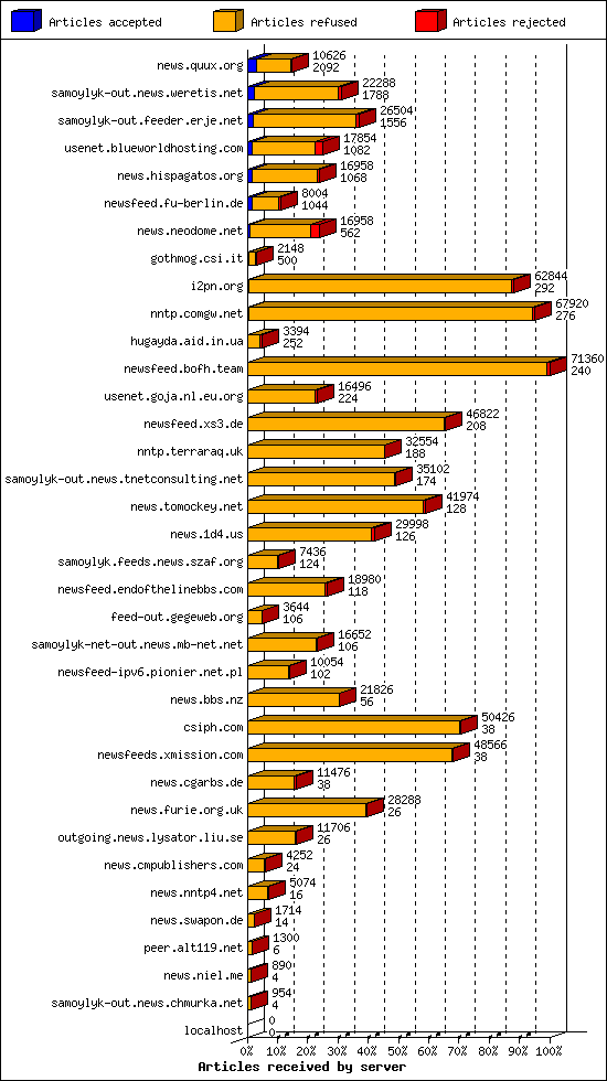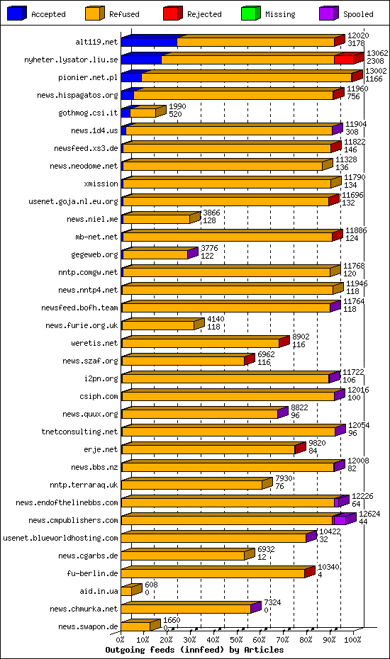 | 15 | nntp.terraraq.uk | 4 | 32554 | 188 | 32142 | 224 | 0% | 50:30:58 |