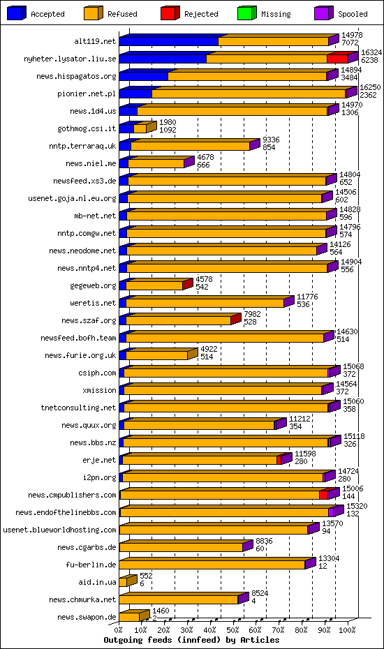 | 9 | usenet.goja.nl.eu.org | 24 | 17360 | 380 | 16740 | 240 | 2% | 45:24:04 |
