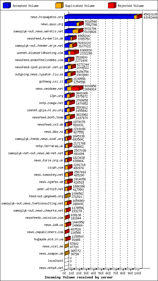| 18 | nntp.terraraq.uk | 2 | 13272 | 176 | 12778 | 318 | 1% | 85:28:28 |
