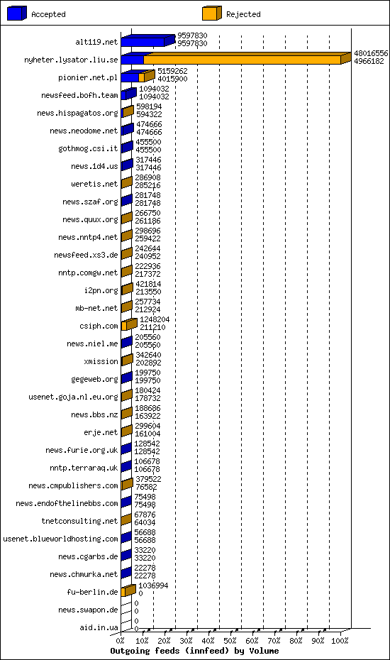 | 11 | outgoing.news.lysator.liu.se | 2 | 12814 | 488 | 11680 | 646 | 3% | 47:59:54 |