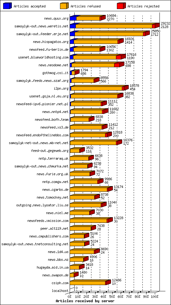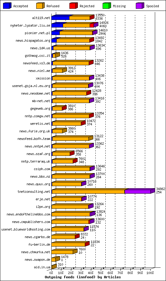 | 11 | usenet.goja.nl.eu.org | 22 | 16838 | 382 | 16010 | 446 | 2% | 48:11:28 |