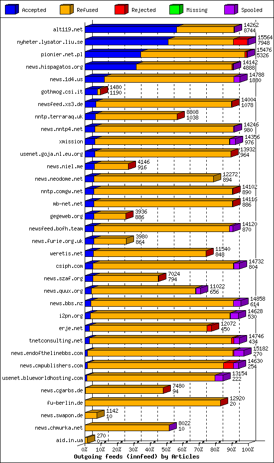 | 16 | nntp.comgw.net | 4 | 21918 | 114 | 21694 | 110 | 0% | 63:30:04 |