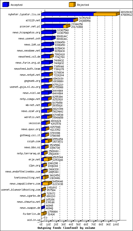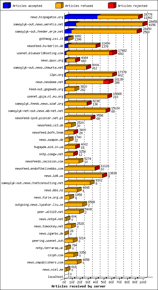 | 12 | usenet.goja.nl.eu.org | 22 | 15668 | 210 | 15450 | 8 | 1% | 47:36:50 |
