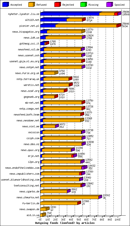 | 15 | newsfeed-ipv6.pionier.net.pl | 6 | 9586 | 68 | 9512 | 6 | 0% | 48:19:54 |