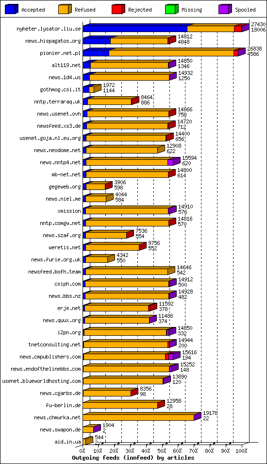 | 2 | samoylyk-out.news.weretis.net | 8 | 31412 | 4704 | 26068 | 640 | 14% | 99:42:22 |