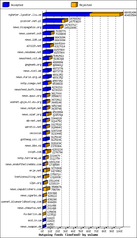 | 3 | samoylyk-out.feeder.erje.net | 1152 | 31436 | 2418 | 28710 | 308 | 7% | 95:03:30 |