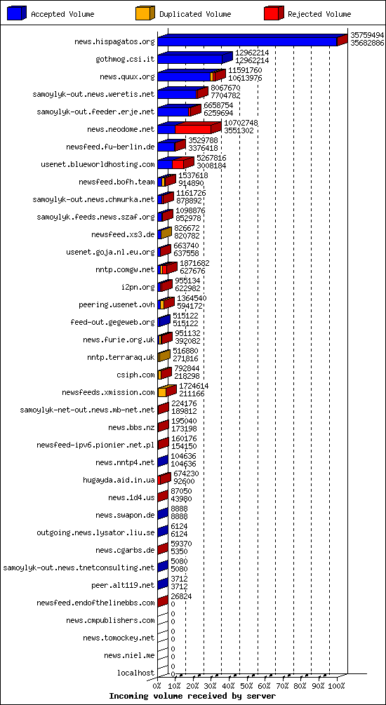 | 2 | news.quux.org | 6 | 13406 | 3202 | 10010 | 194 | 23% | 59:42:50 |