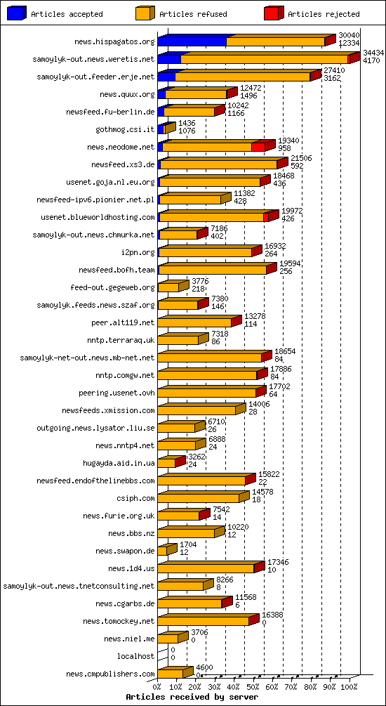 | 2 | samoylyk-out.news.weretis.net | 10 | 34434 | 4170 | 29948 | 316 | 12% | 100:20:56 |