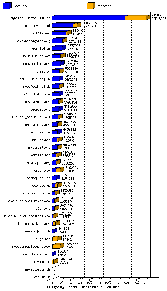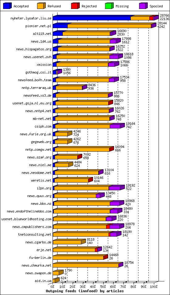 | 18 | nntp.terraraq.uk | 4 | 7318 | 86 | 7232 | 0 | 1% | 53:33:18 |