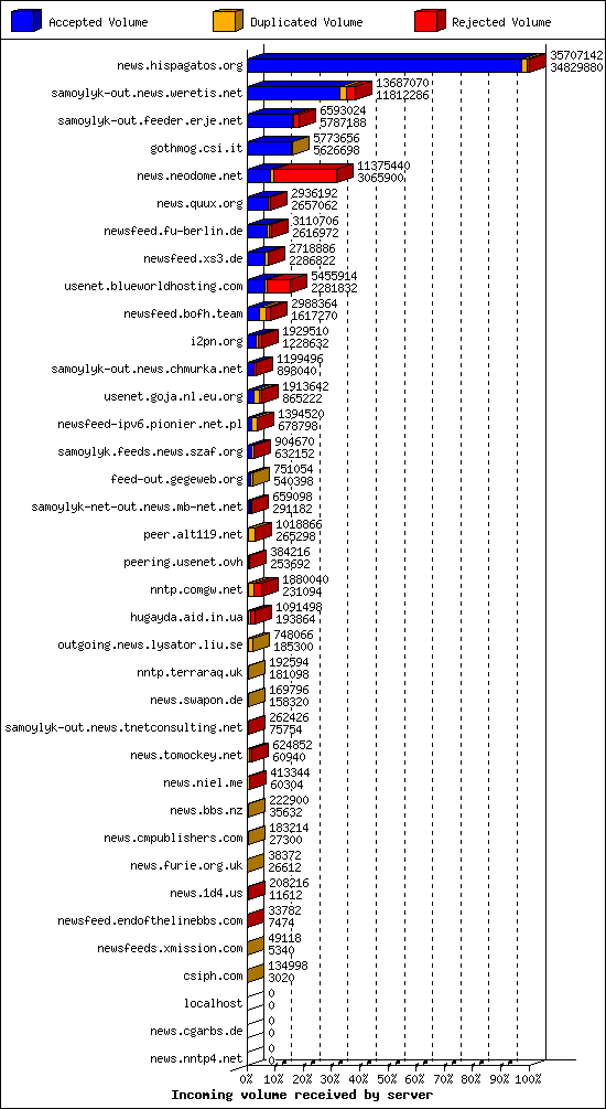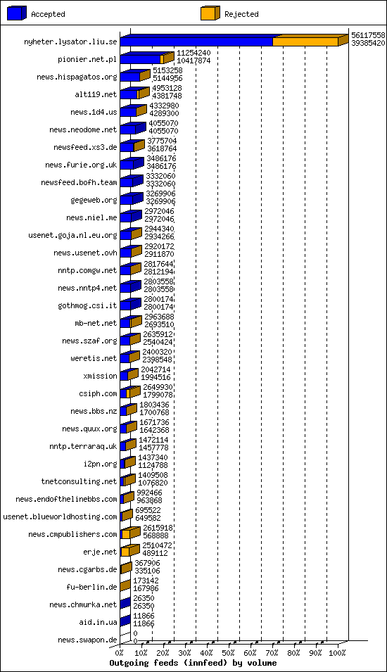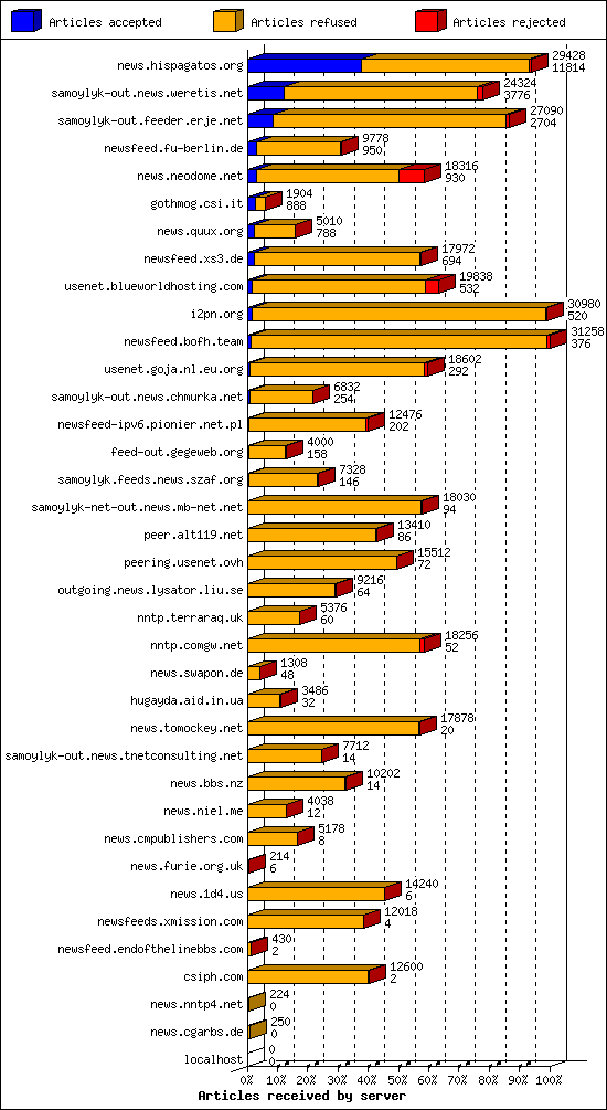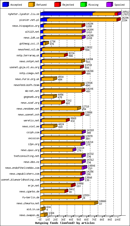 | 12 | usenet.goja.nl.eu.org | 22 | 18602 | 292 | 18006 | 304 | 1% | 47:47:58 |
