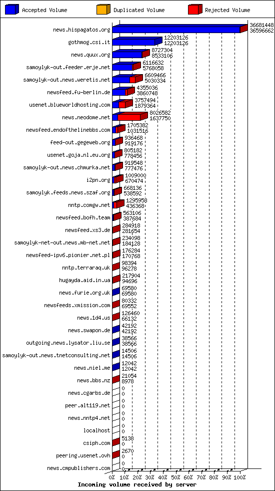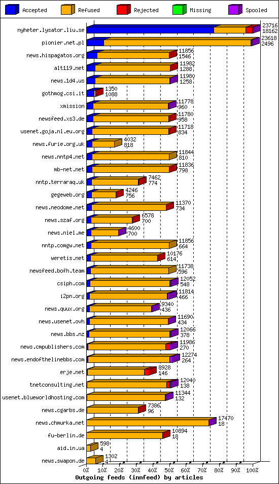 | 20 | nntp.terraraq.uk | 4 | 6270 | 36 | 6232 | 2 | 0% | 47:59:52 |