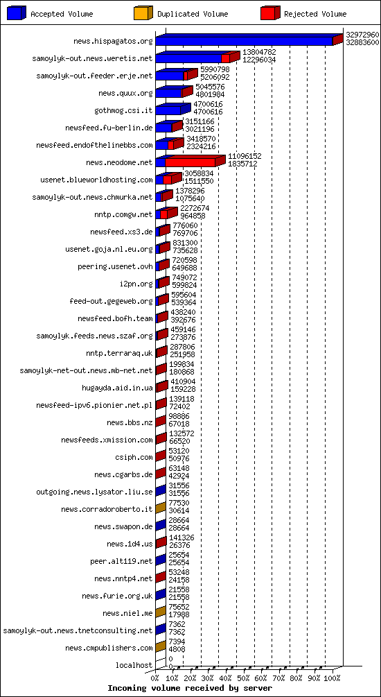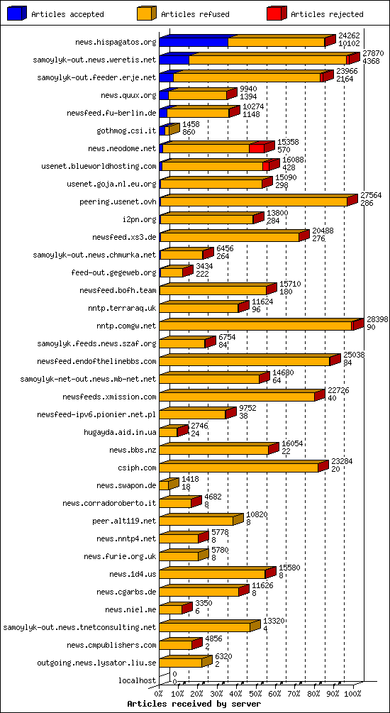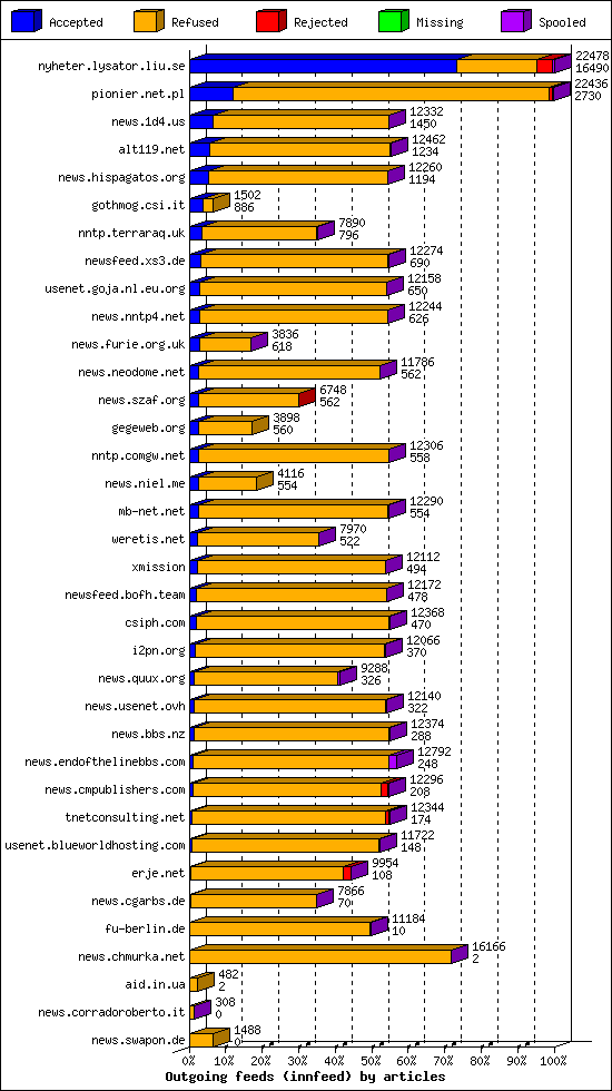 | 9 | usenet.goja.nl.eu.org | 40 | 15090 | 298 | 14758 | 34 | 1% | 49:09:22 |