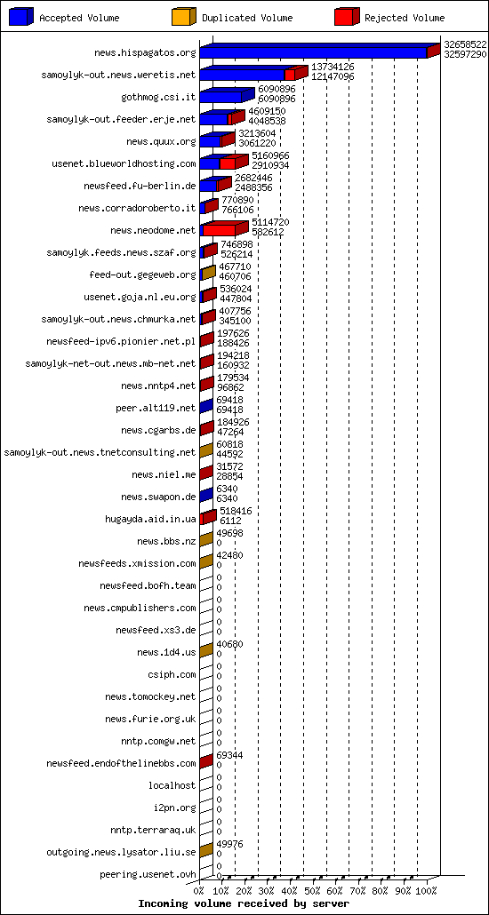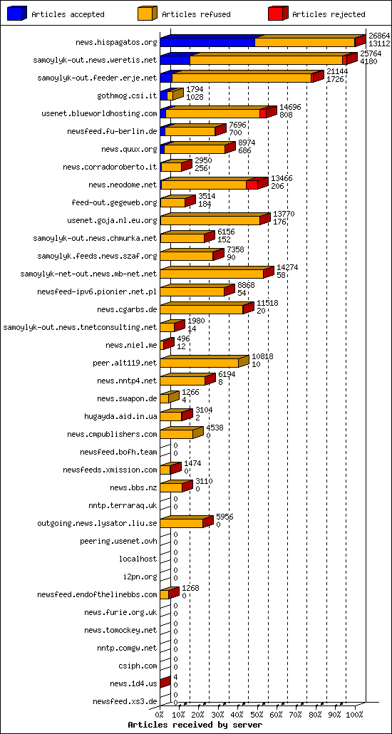 | 11 | usenet.goja.nl.eu.org | 24 | 13770 | 176 | 13566 | 28 | 1% | 39:39:00 |