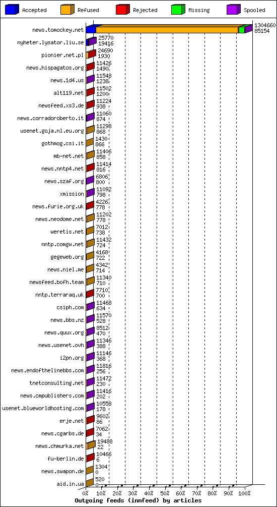 | 23 | outgoing.news.lysator.liu.se | 12 | 5956 | 0 | 5950 | 6 | 0% | 42:56:26 |