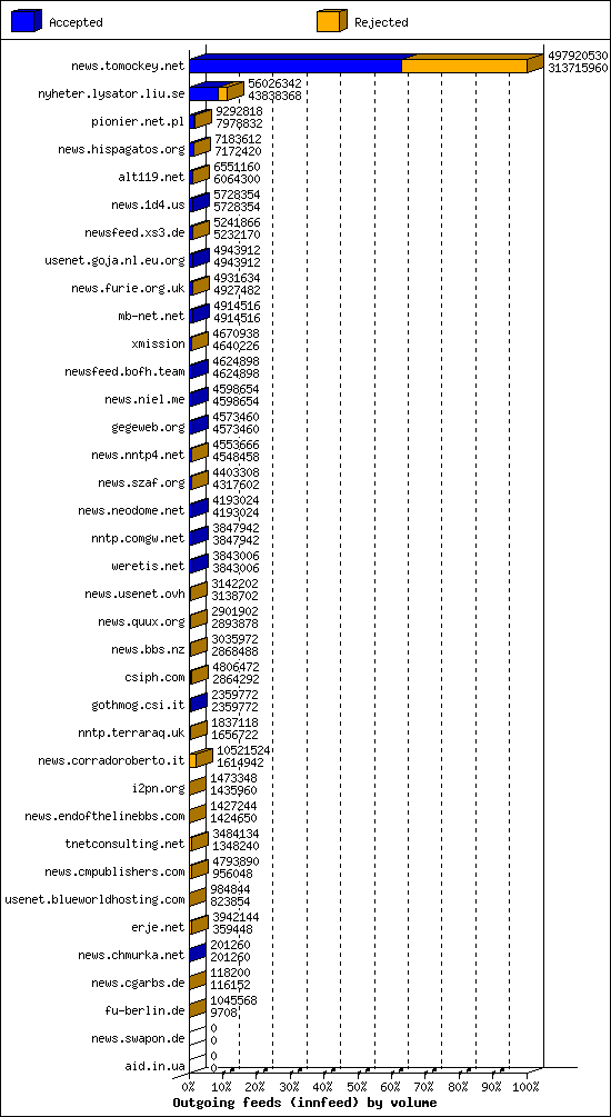 | 15 | newsfeed-ipv6.pionier.net.pl | 18 | 8868 | 54 | 8808 | 6 | 0% | 42:30:52 |