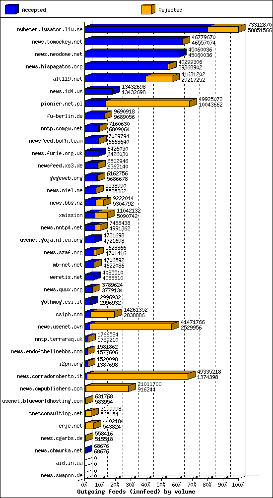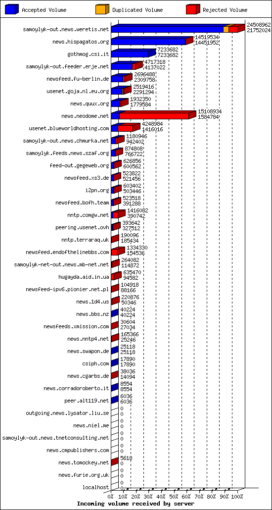 | innd | 32146 | 43.7% | 4.2 MB | 32.1% |