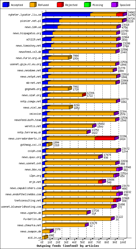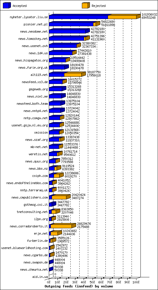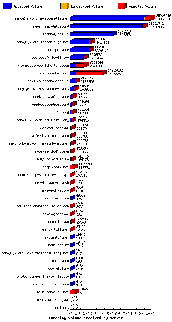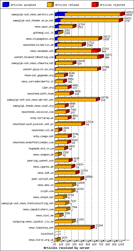 | 10 | usenet.goja.nl.eu.org | 40 | 27366 | 324 | 27026 | 16 | 1% | 84:52:12 |