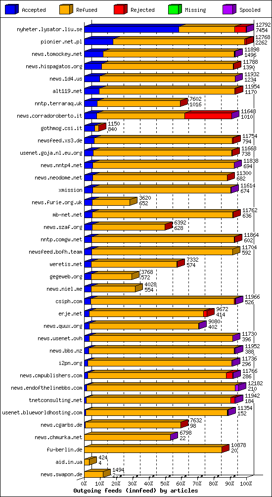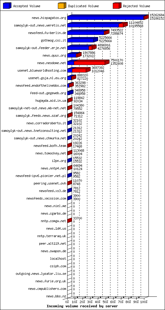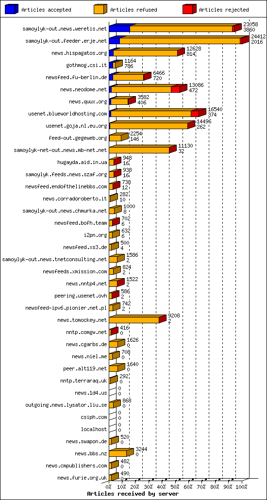| 9 | usenet.goja.nl.eu.org | 22 | 14496 | 262 | 14204 | 30 | 1% | 44:50:08 |