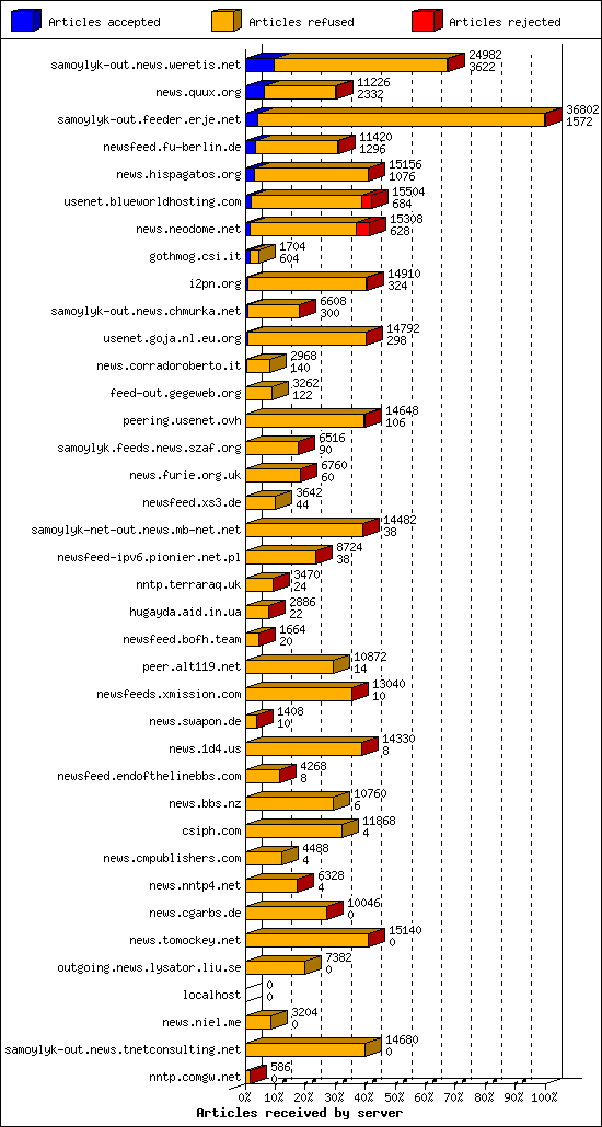 | innfeed | 16216 | 20.9% | 3.0 MB | 22.4% |