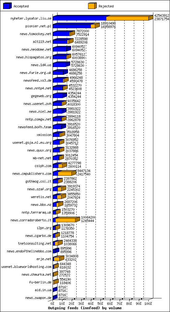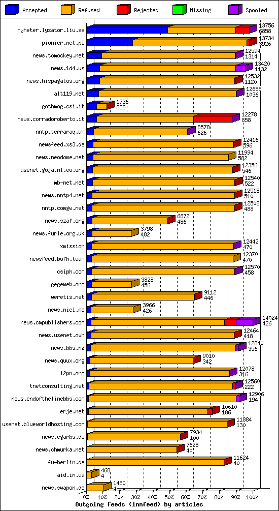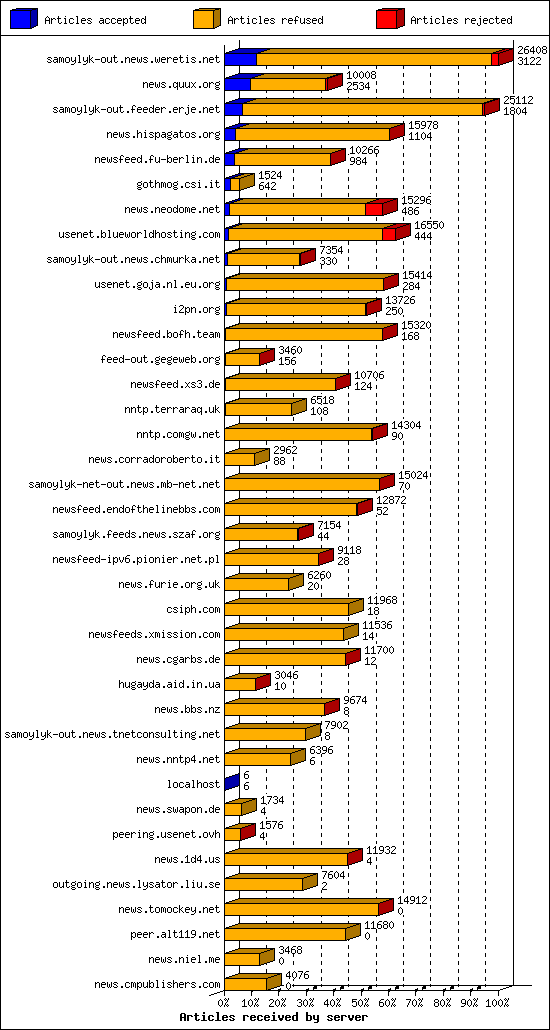 | 10 | usenet.goja.nl.eu.org | 20 | 15414 | 284 | 15120 | 10 | 1% | 47:46:44 |