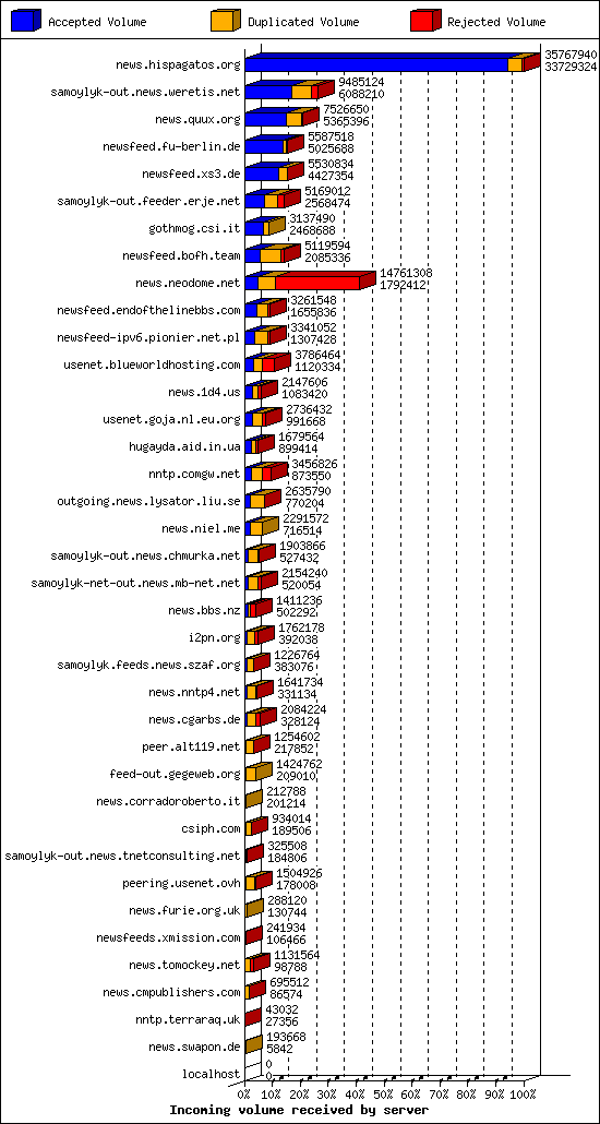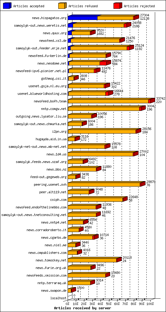 | 10 | usenet.goja.nl.eu.org | 22 | 15422 | 302 | 14518 | 602 | 1% | 48:35:42 |